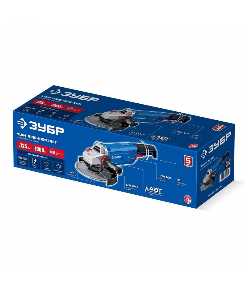 УШМ Зубр УШМ-П125-1905 ЭПСТ Профессионал 1900 Вт, d125 мм, регулировка оборотов, фланец "МИГ"