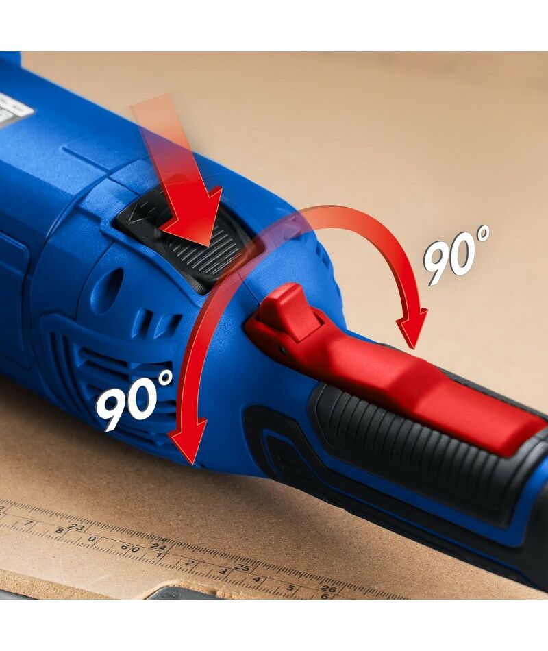 - Поворотная с шагом 90° голова позволяет настроить изделие под левую руку или для резки