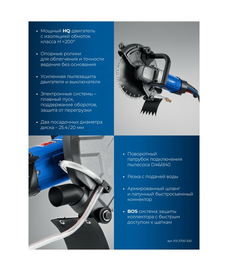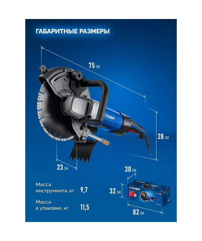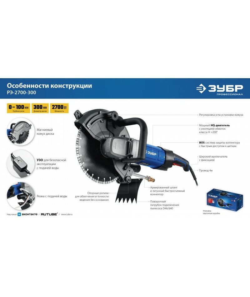 Резчик по бетону Зубр РЭ-2700-300 Профессионал, d 305 мм, 2700 Вт, 100 мм, электрический [РЭ-2700-300]