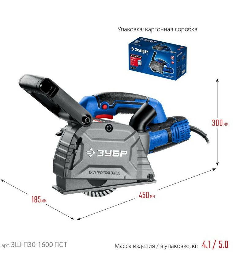 Штроборез (бороздодел) Зубр ЗШ-П30-1600 ПСТ Профессионал d 125 мм, 1600 Вт, 30 мм