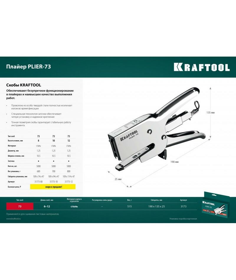 Мощный стальной плайер KRAFTOOL HD-73 тип 73(6-12мм) [3173]