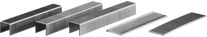 53 (A|3|11) для крепления тканных материалов(ткани, обивки, холста) и материалов не несущих высоких нагрузок к поверхности из дерева, ДВП, пластика и т.п. Тонкая проволока не повреждает волокна материалов. 53F (D I 056 I 20GA) для надежного крепления проволочной сетки, тонкого металла, бумаги, текстильных, картонных, деревянных и других материалов 140 (G/11/57) для крепления нетканных материалов, пленок, уплотнителей, бумаги и картона к поверхности из дерева, пластика, двп и т.д. Широкая спинка скобы не прорезает прикрепленный материал. 13 (H I 37 I 19) для крепления тонких материалов и материалов не несущих высоких нагрузок 300 (E|J|8|47) прочное скрепления заготовок из дерева, пластика, двп и т.п. между собой. 500 (41) – незаметное скрепление заготовок из дерева, пластика, двп и т.п. между собой.