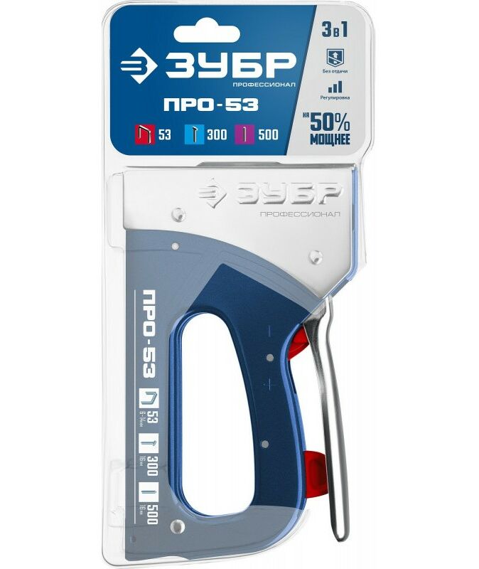 Стальной рессорный степлер Зубр Про-53 тип 53 (A/10/JT21) 23GA (6 - 16 мм)/300/500 [31523]