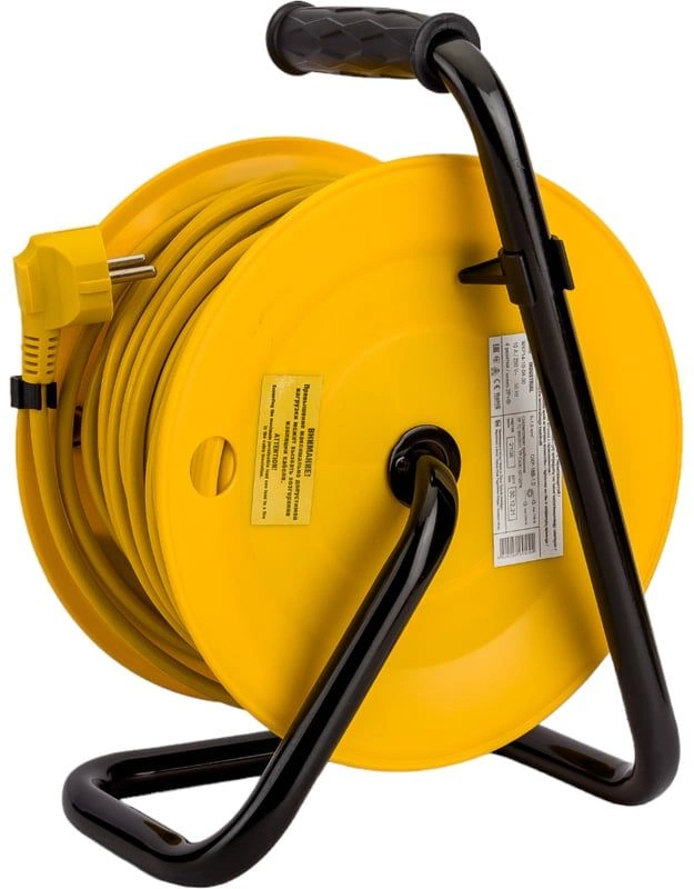 Удлинитель силовой IEK WKP14-10-04-30 Industrial 1кв.мм 4розет. 30м ПВС 10A катушка желтый