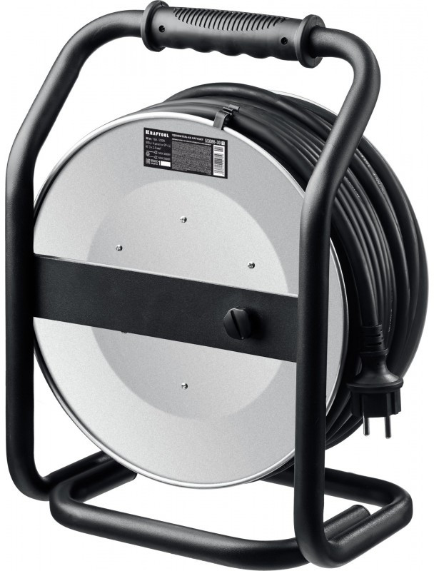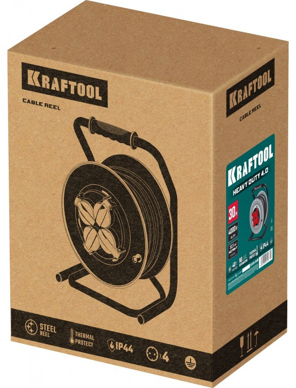 Силовой удлинитель на стальной катушке KRAFTOOL HEAVY DUTY КГ 3х2.5 30м 4000Вт IP44 [55086-30_z01]
