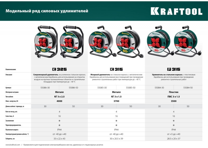 Электротехнические изделия KRAFTOOL созданы на основе современных материалов и технологий. Благодаря соблюдению высоких стандартов качества, наша продукция обеспечит надежную работу на протяжении всего срока службы.