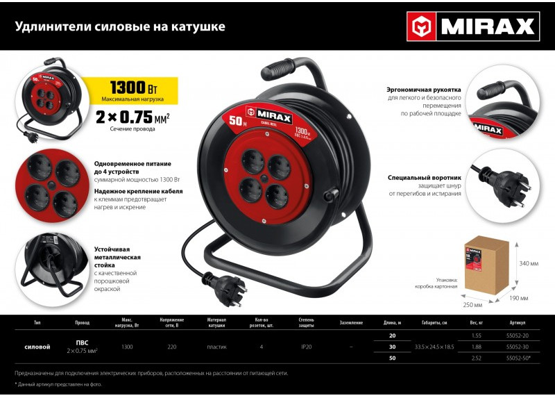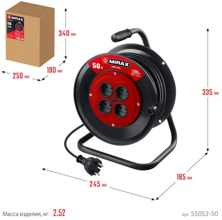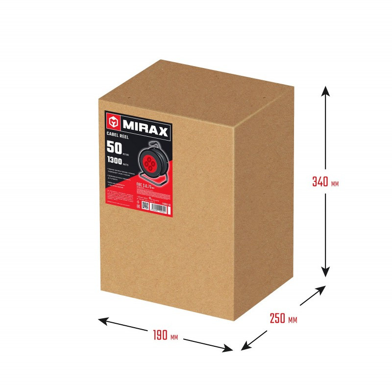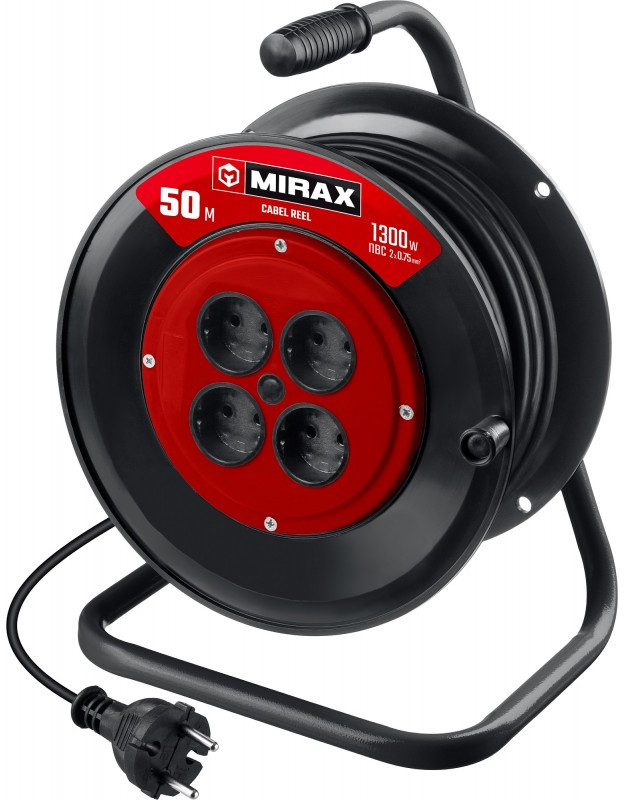 удлинитель на катушке MIRAX ПВС 2 х 0.75 мм2 50 м, 1300 Вт [55052-50]