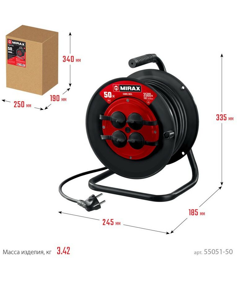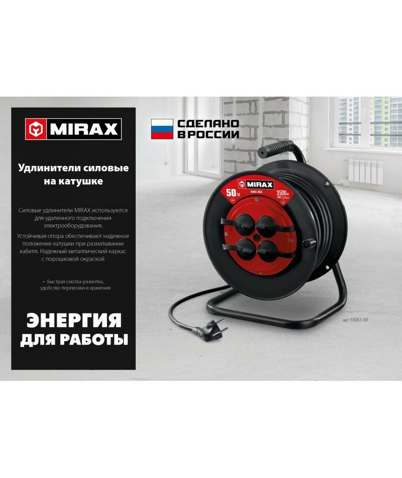 Силовой удлинитель на катушке MIRAX ПВС 3х2.5 50м 3500Вт IP44 [55051-50]