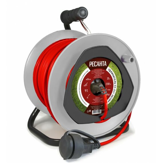 Удлинитель силовой на катушке РЕСАНТА СУ-2х1-30/2ВР 30 м, ПВС, 2х1, 1 гнездо, пластиковая катушка