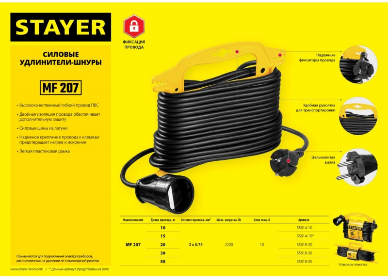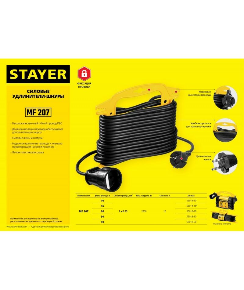 Силовой удлинитель-шнур STAYER MF 207 ПВС 2x0.75 50м, 2200Вт на рамке [55018-50_z01]