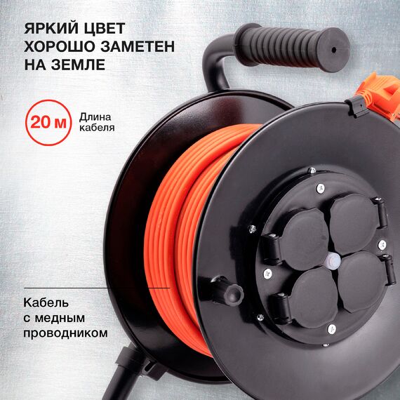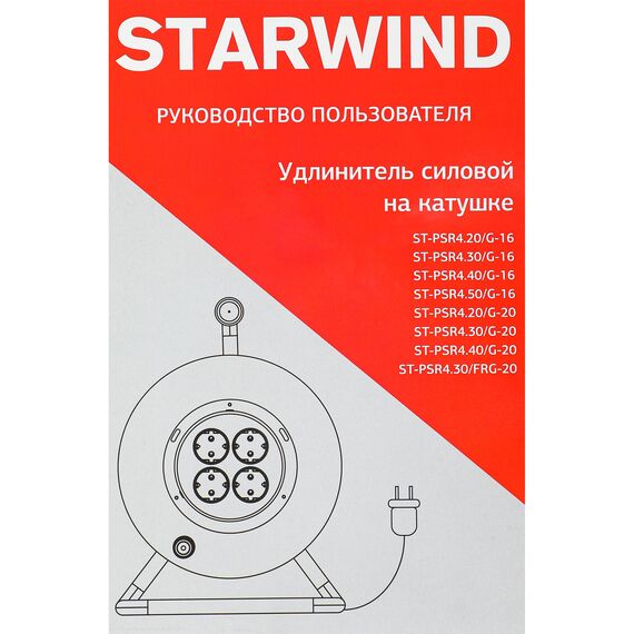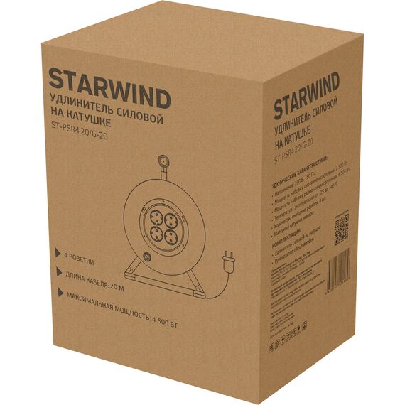 Удлинитель силовой STARWIND ST-PSR4.20/G-20 3x1.5кв.мм 4розет. 20м ПВС 20A катушка оранжевый