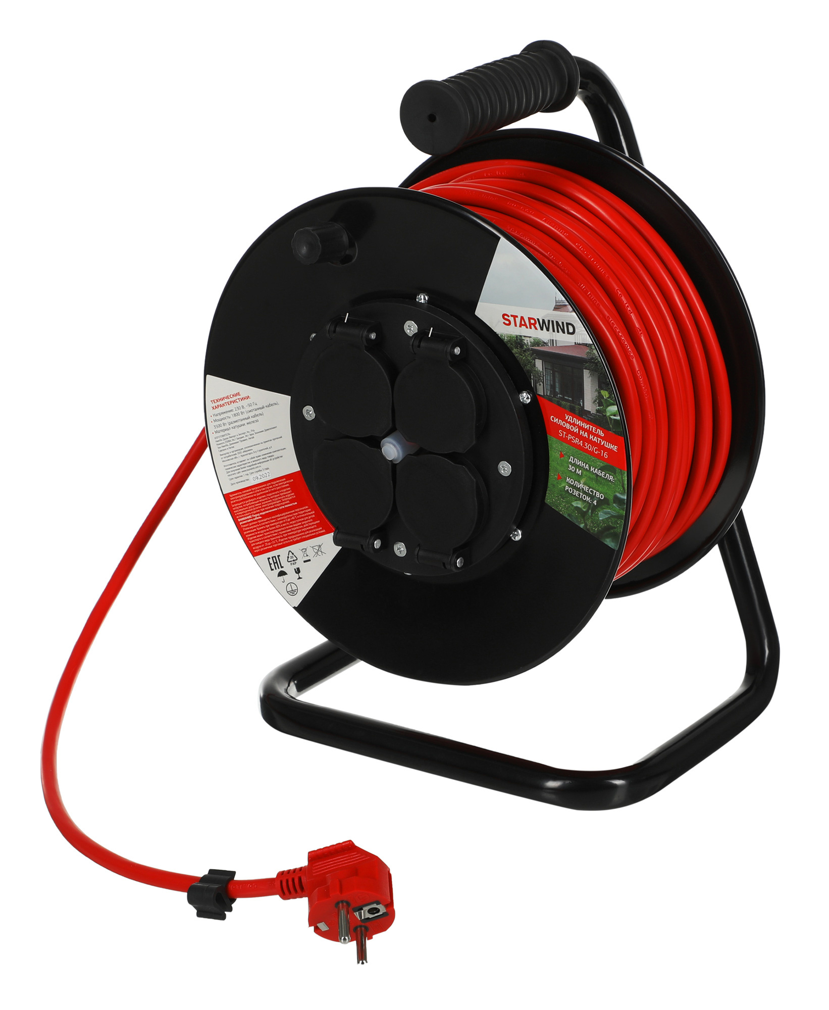 Удлинитель силовой STARWIND ST-PSR4.30/G-16 3x1.5кв.мм 4розет. 30м ПВС 16A катушка оранжевый