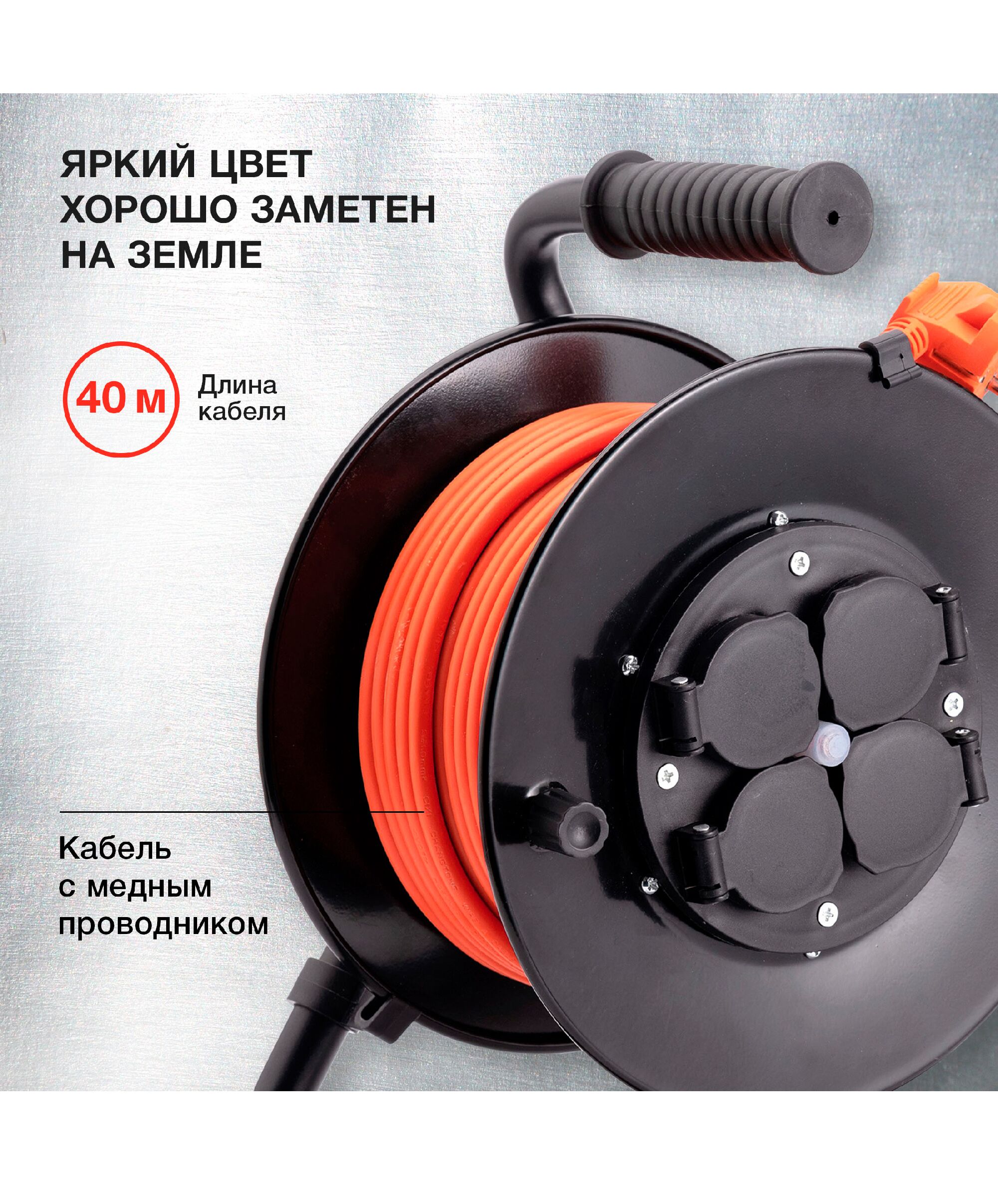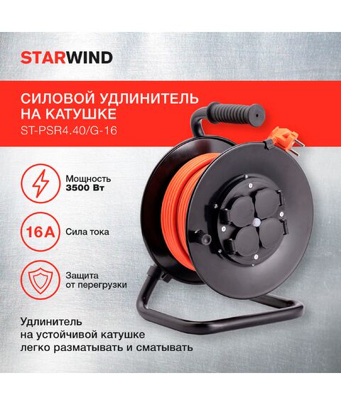Удлинитель силовой STARWIND ST-PSR4.40/G-16 3x2.0кв.мм 4розет. 40м ПВС 16A катушка оранжевый