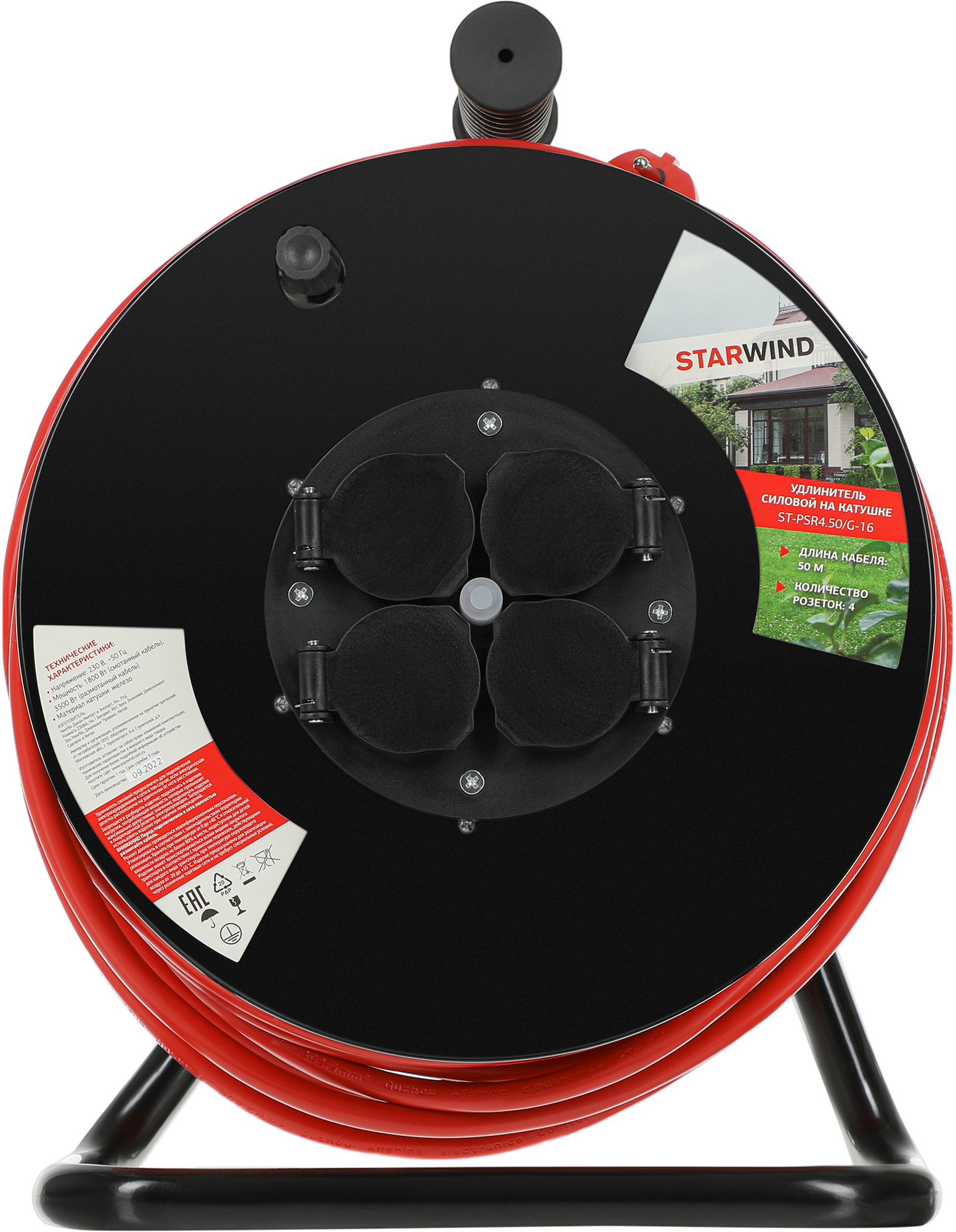 Удлинитель силовой STARWIND ST-PSR4.50/G-16 3x2.5кв.мм 4розет. 50м ПВС 16A катушка оранжевый