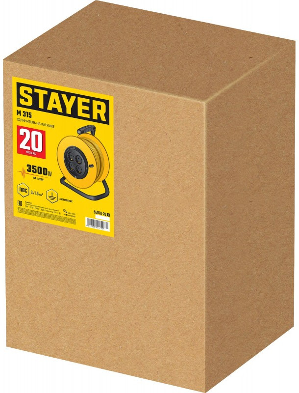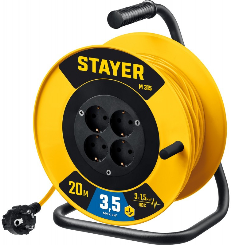 Силовой удлинитель на катушке STAYER M 315 ПВС 3х1.5 20м 3500Вт [55078-20_z01]