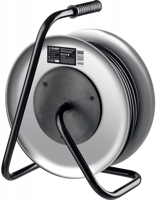 Силовой удлинитель на стальной катушке Зубр КГ 325 КГ 3х2.5 30м 4000Вт IP44 [55079-30]