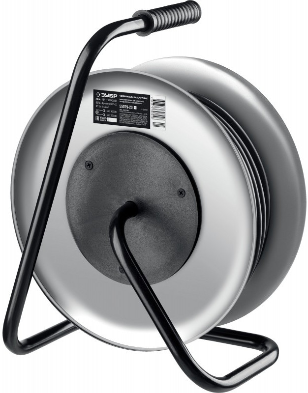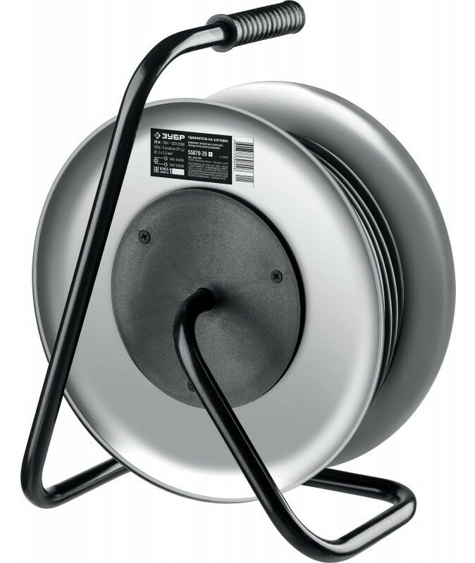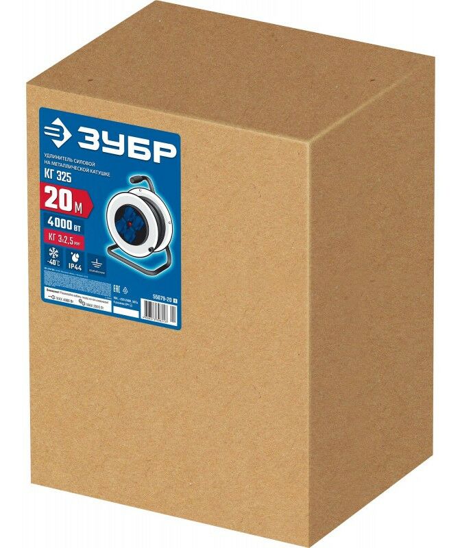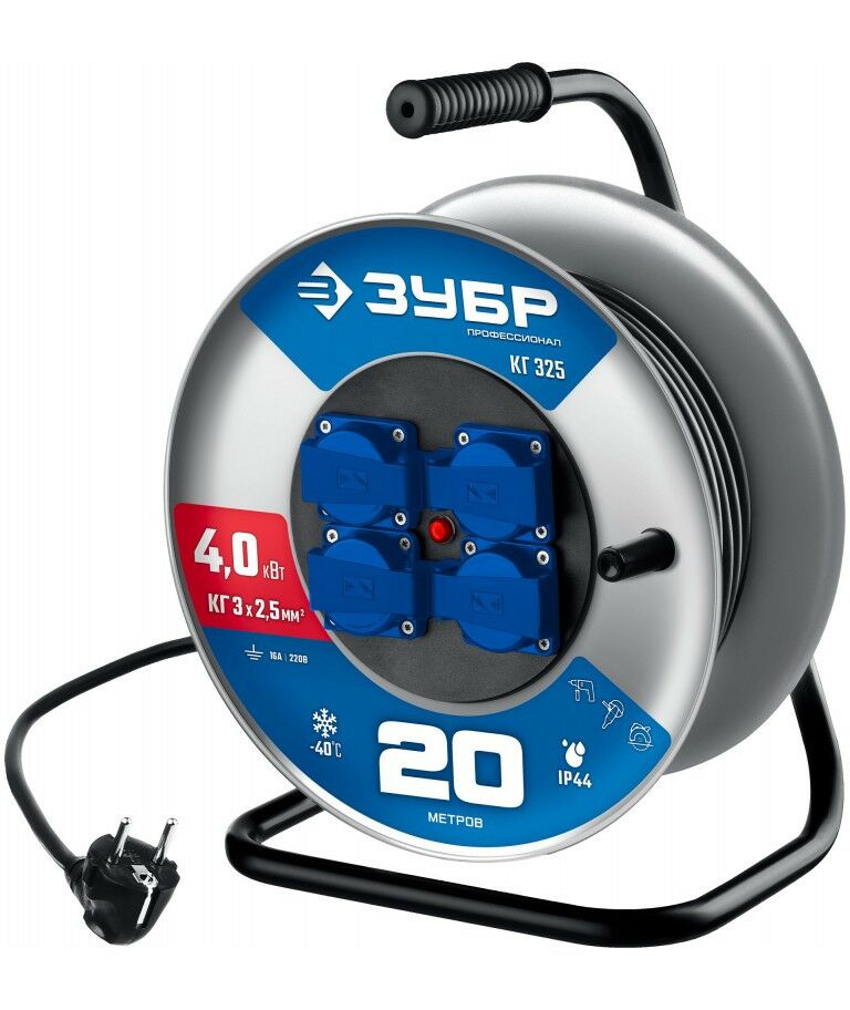 Силовой удлинитель на стальной катушке Зубр Профессионал КГ-325 КГ, 3 x 2.5 мм2, 20 м, 4000 Вт, IP44 [55079-20]