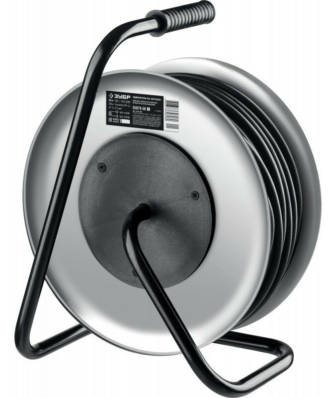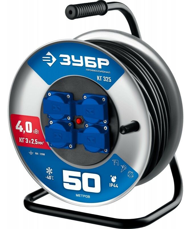 Силовой удлинитель на стальной катушке Зубр Профессионал КГ-325 КГ, 3 x 2.5 мм2, 50 м, 4000 Вт, IP44 [55079-50]