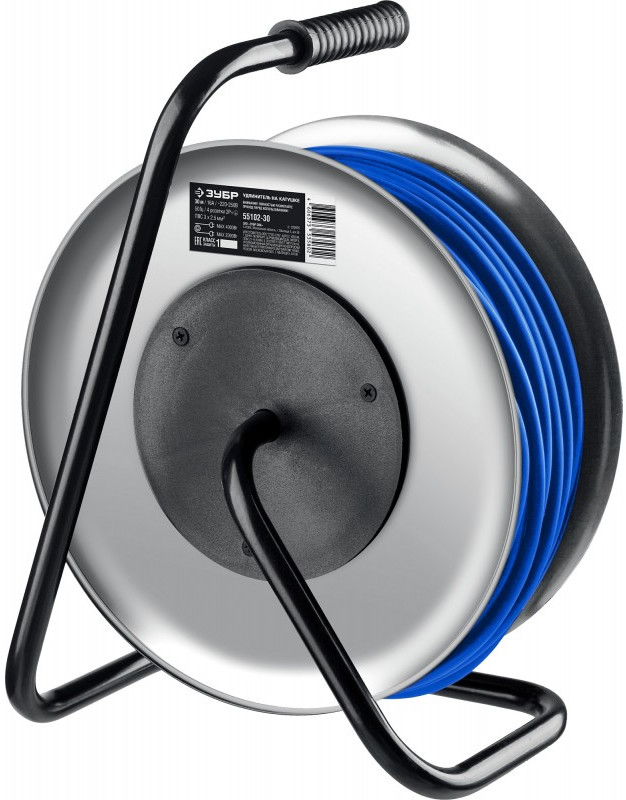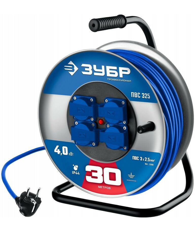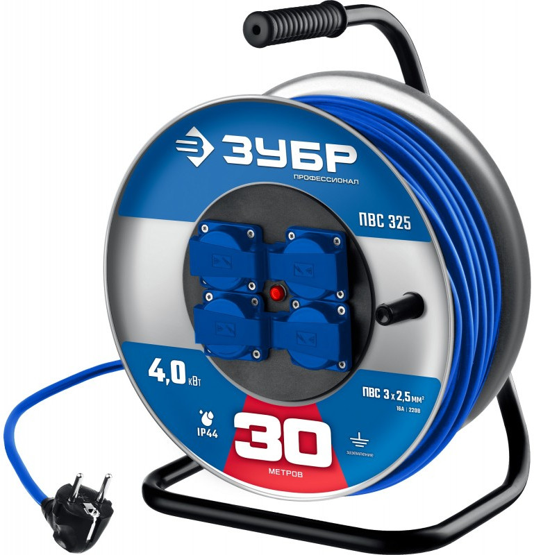 Силовой удлинитель на стальной катушке Зубр ПВС 325 ПВС 3х2.5 30м 4000Вт IP44 [55102-30]