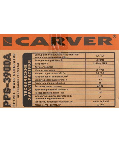 Генератор Carver PPG-3900A 3.2кВт [01.020.00012]