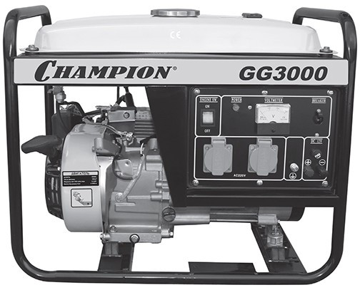Электростанция бензиновая Champion GG 3000 2,3/2.5 кВт; OHV 4,62 л/с; бак 15л; 42,56кг, 1,4л/ч