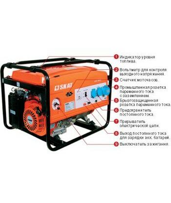 Электростанция SKAT УГБ-4000 бензин, 4,0/4,5 кВт, бак 25 л, вес 82 кг
