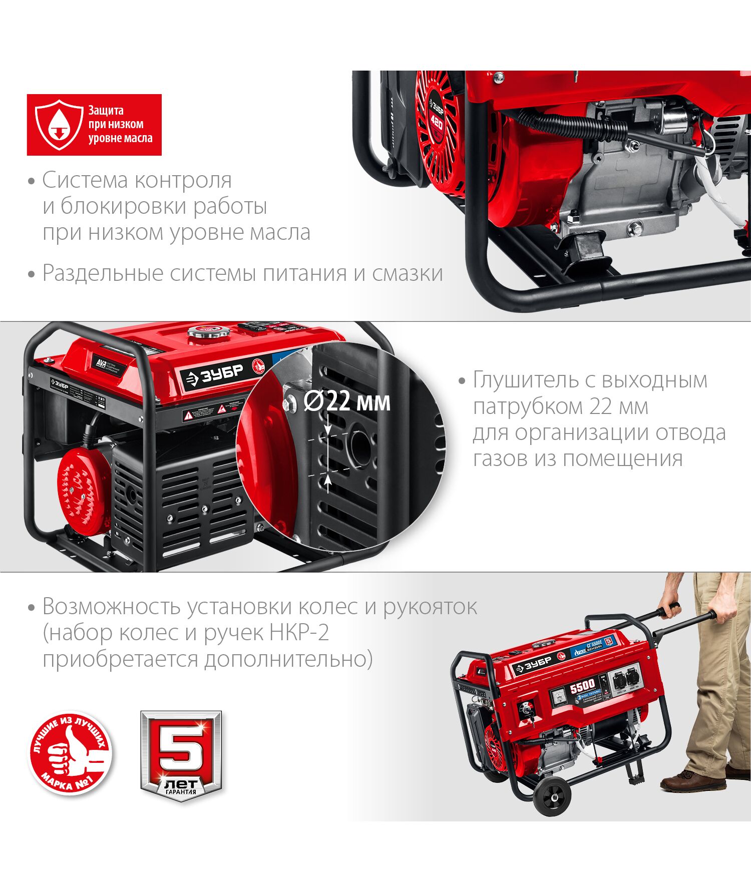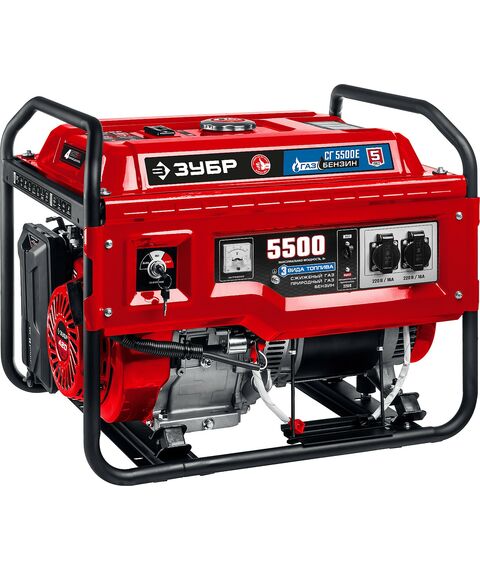 Генератор гибридный с электростартером Зубр СГ-5500Е 5.5 кВт, бензин / газ
