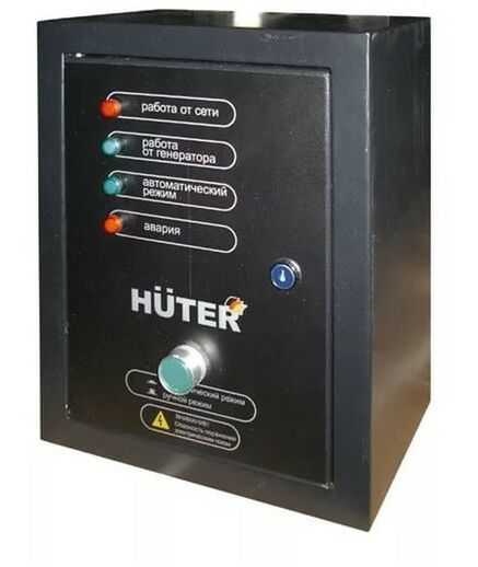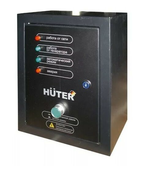 - Данная модель блока автоматического ввода резерва создана компанией Huter и может работать как в ручном, так и в автоматическом режиме. Конструкция рассчитана на эффективную работу в температурной среде от +10 до +40 °С. В технические возможности блока автоматики заложена возможность трех последовательных попыток запуска бензинового генератора.