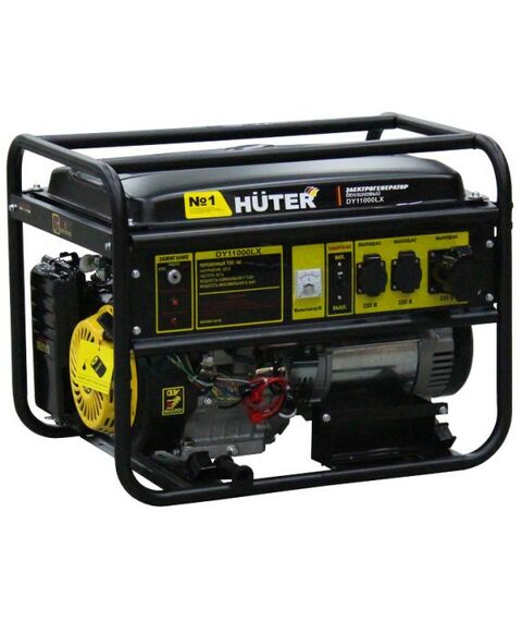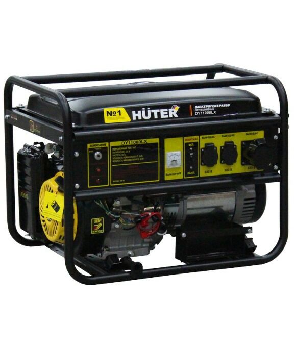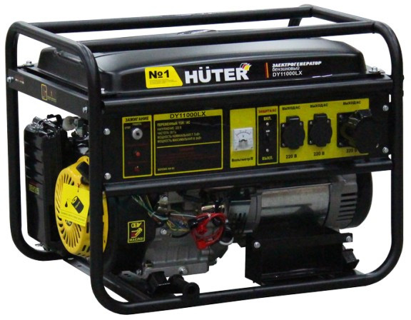 - Бензиновый генератор Huter DY11000LX – портативная компактная электростанция, обеспечивающая электроснабжение бытовой техники и профессионального оборудования, питающегося от стандартной однофазной сети 220 Вольт. Это самый выгодный бензиновый электрогенератор, с оптимальными техническими характеристиками и низким расходом топлива.