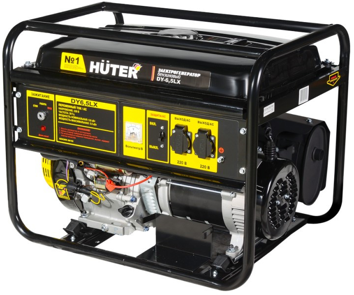 - Бензиновая электростанция Huter DY6,5LX оборудована мощным одноцилиндровым четырёхтактным двигателем внутреннего сгорания, мощностью 13 л.с