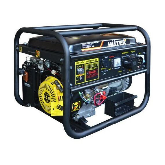 Модель генератора HUTER DY6500LXA во всем аналогична DY6500LX и отличается только наличием автоматического ввода резерва (АВР). Его можно дополнительно установить и на DY6500LX