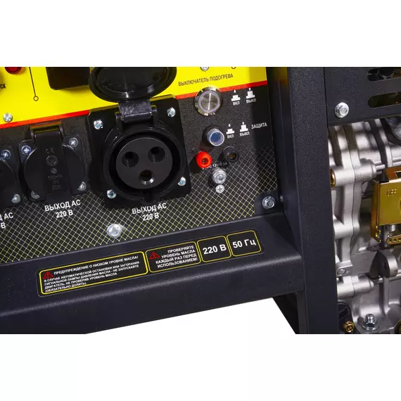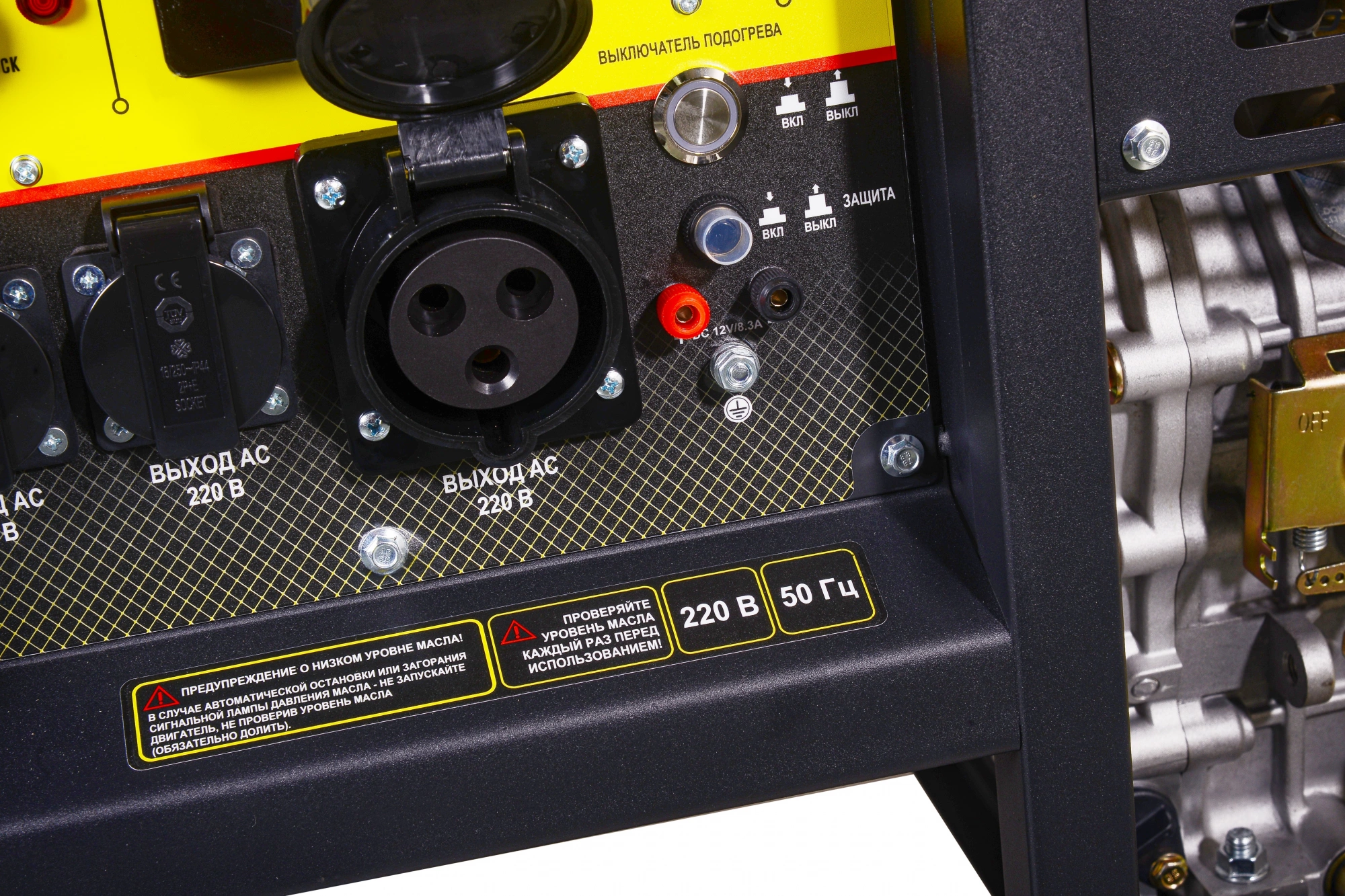 | Особенности | Щёточный генератор. Двигатель одноцилиндровый с воздушным охлаждением. Есть предподготовка для подключения АВР. |