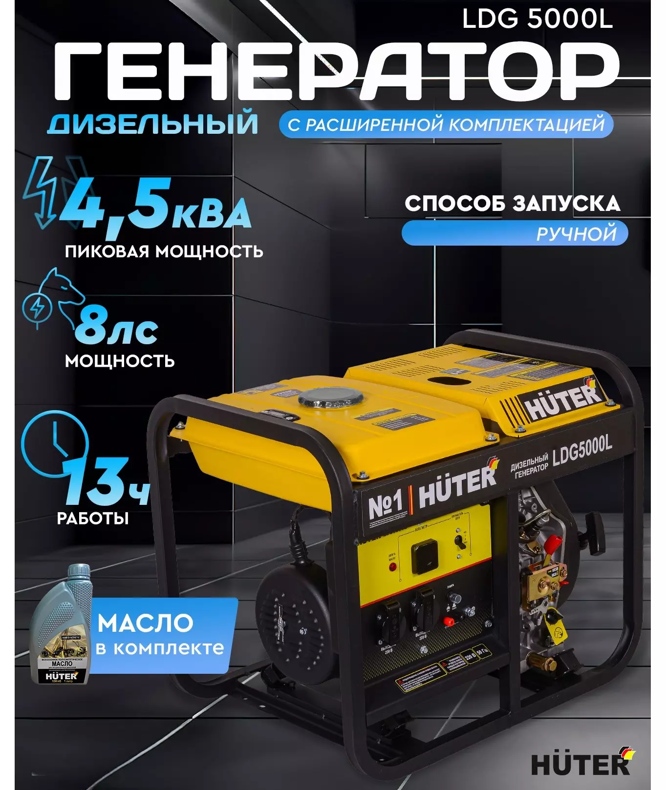 Электрогенератор дизельный Huter LDG 5000L KEM069 3.3 Квт, 220-230 В, бак 14 л