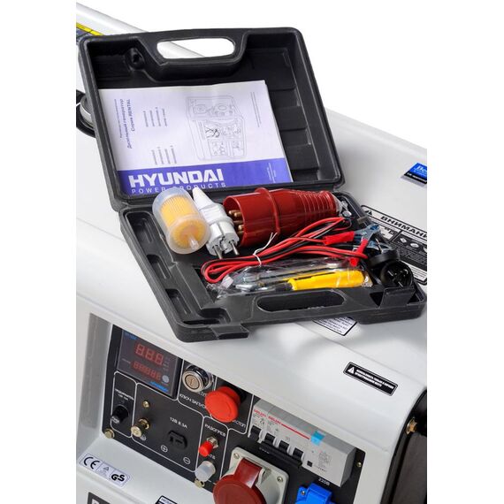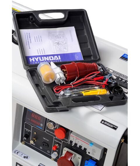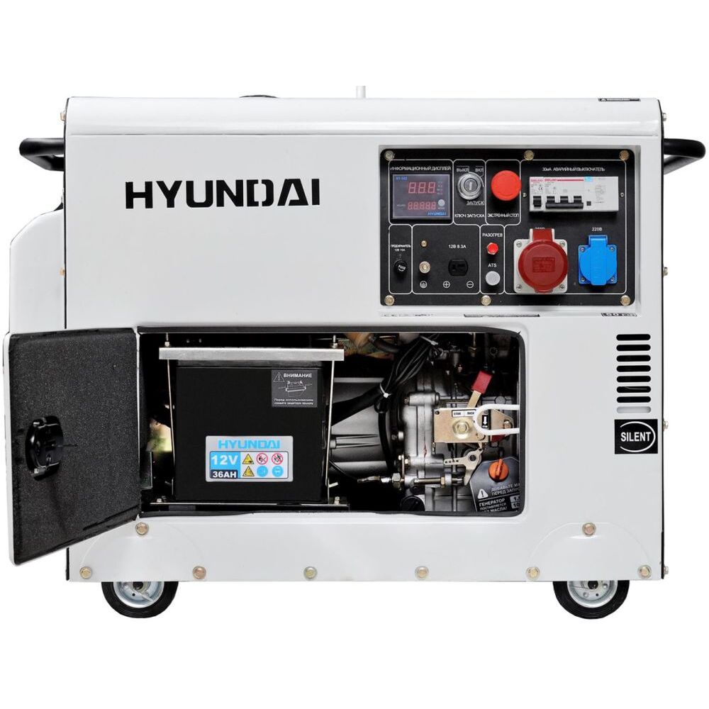 | Особенности | Двигатель HYUNDAI серии IC (industrial commercial). Электрозапуск 12 volt. Выключатель защиты при перегрузках. Аварийная остановка при низком уровне масла в картере. Увеличенный стальной топливный бак. Автоматический регулятор напряжения с защитой от КЗ. Транспортировочные колеса в комплекте. |
