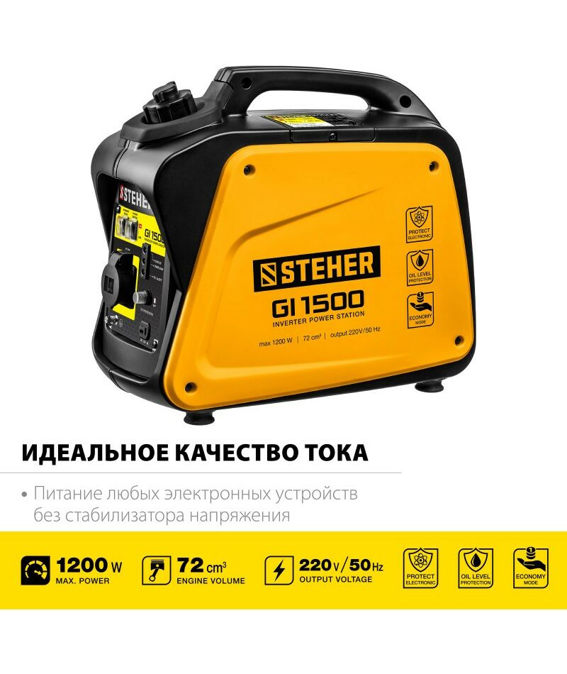 Генератор инверторный STEHER GI-1500 1200 Вт