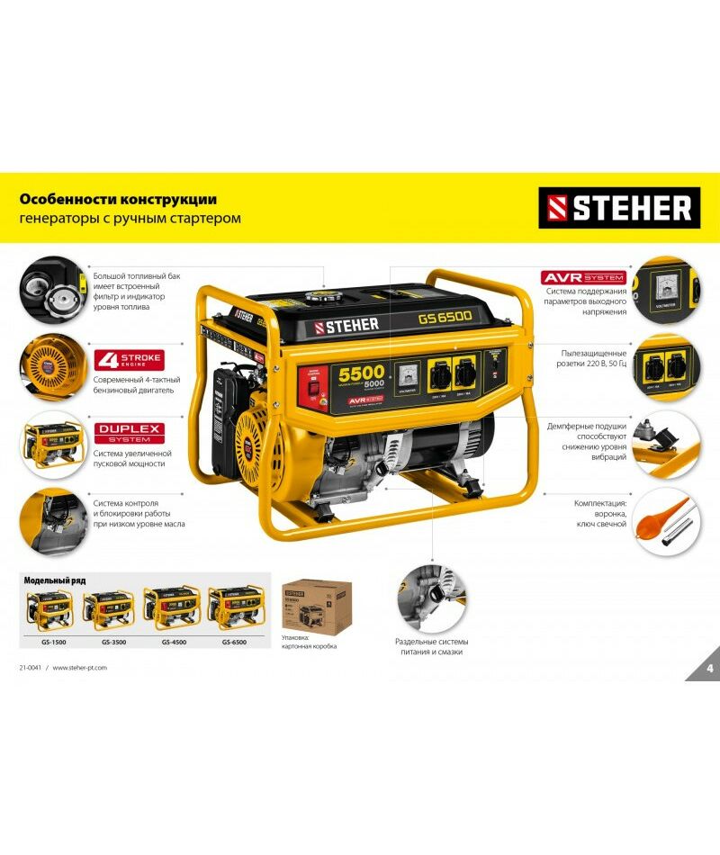 Бензиновый генератор STEHER GS-3500 2800 Вт [GS-3500]