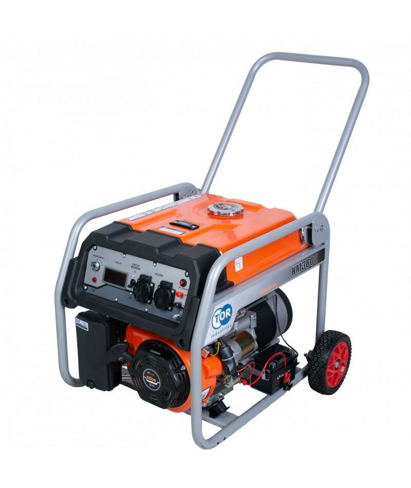 Генератор бензиновый TOR KM3800H 2,5кВт 220В 16л с кнопкой запуска и колесами. Мощная модель, которая подойдет не только для бытового, но и профессионального использования, например, в строительстве и производстве. Вместительный бак на 16 литров бензина и время непрерывной работы 10ч обеспечат потребителя стабильным током напряжением 220в на продолжительное время. Кнопка запуска с электростартером облегчает процесс запуска генератора, для максимально комфортного использования. Наличие колес в комплекте позволяет транспортировать генератор весом 53кг без особых усилий. Сфера применения: частные дома, мастерский, производственные площадки, строительные, бурильные работы, проведение мероприятий на открытом воздухе.