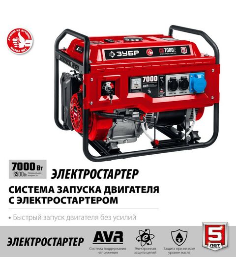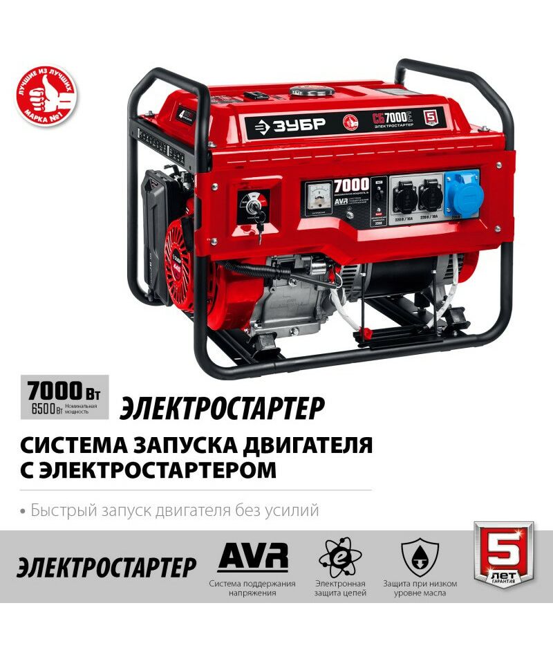 Бензиновый генератор с электростартером Зубр СБ-7000Е 7 кВт