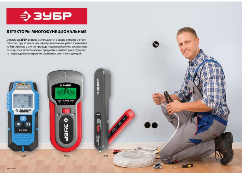 Тестер ЗУБР многофункциональный с детектором металла обладает повышенным ресурсом, обеспечивает высокое качество выполнения электромонтажных работ. Применение высококачественных материалов обеспечивает длительный срок службы. Детекторы незаменимы при проведении строительных, ремонтных и электромонтажных работ.