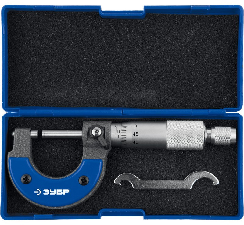 Микрометр Зубр Профессионал МК 25 гладкий механический, диапазон 0-25мм, шаг измерения 0,01мм [34480-25_z02]
