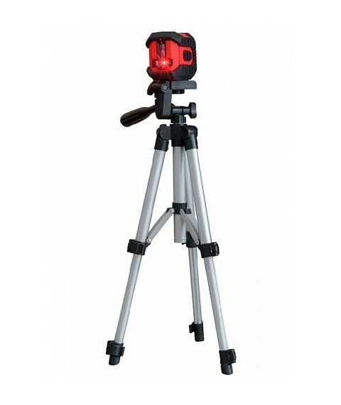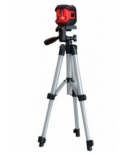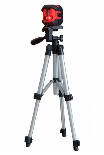 Нивелир лазерный с автоматическим типом выравнивания, имеет два луча - для проецирования вертикальной и горизонтальной линии. Питание осуществляется от 2 батареек типа ААА.