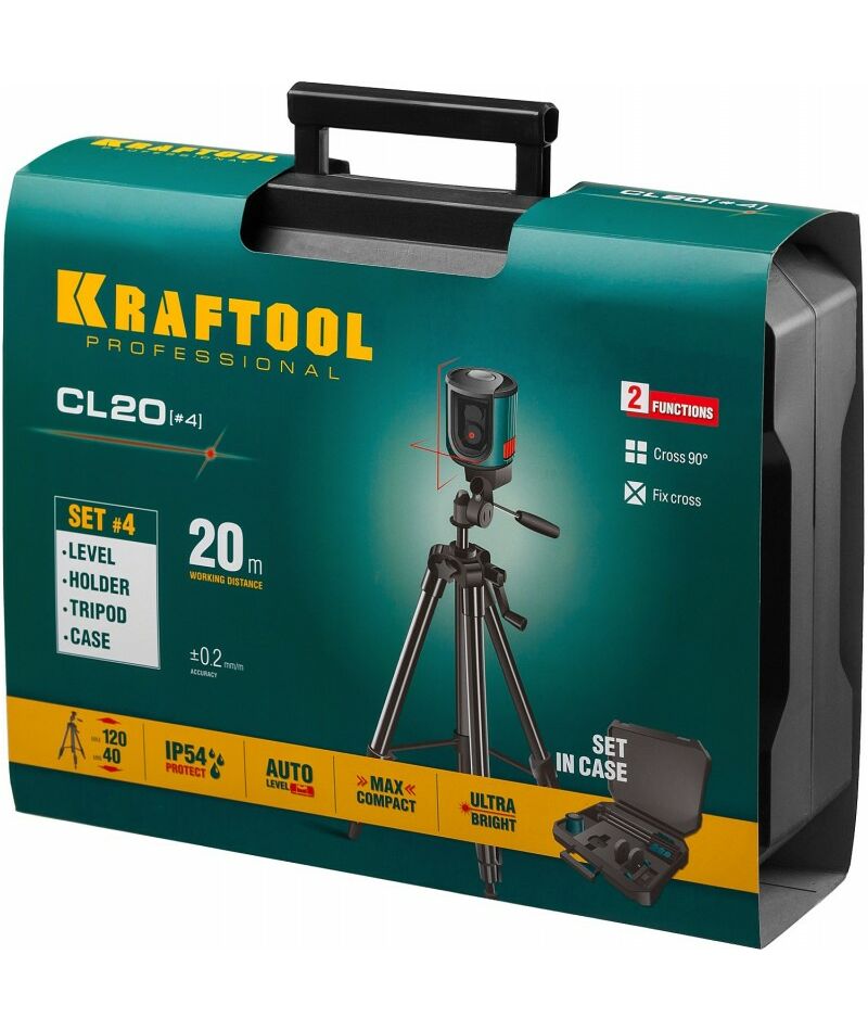 Нивелир лазерный KRAFTOOL CL 20 #4 20 м, IP54, точн. +/-0,2 мм/м, держатель, штатив, в кейcе [34700-4]