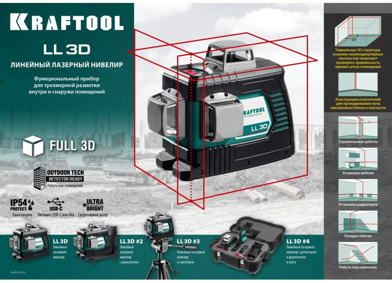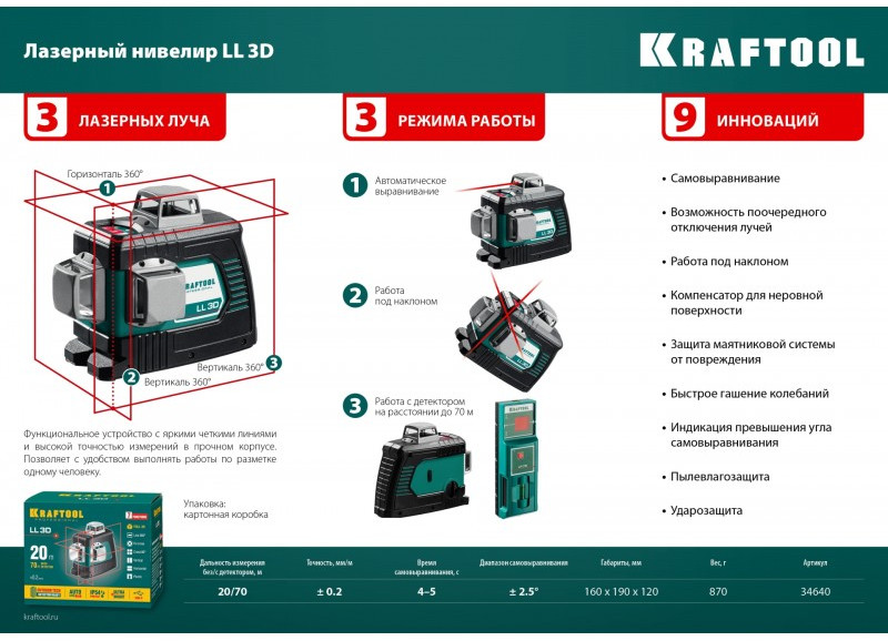 Лазерный нивелир KRAFTOOL LL 3D [34640]
