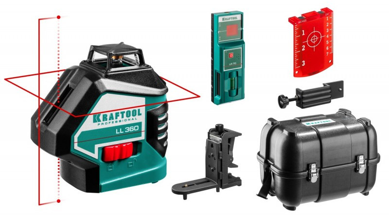 Нивелир лазерный KRAFTOOL LL360 #4 2х360° , 20м / 70м, IP54, точн. +/-0.2 мм/м, держатель, детектор, в кейсе [34645-4]