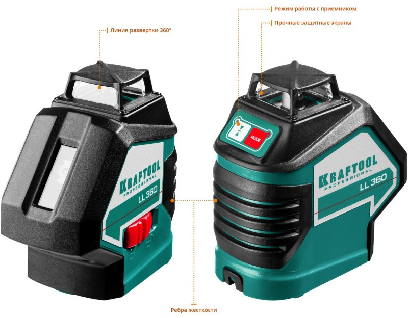 нивелир лазерный KRAFTOOL LL360 2х360°, 20м/70м, IP54, точн. +/-0.2 мм/м, в коробке [34645]