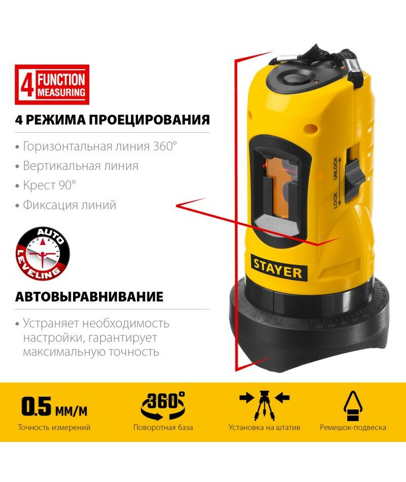 Нивелир лазерный STAYER SLL-2 крест, штатив, кейс [34960-H2]