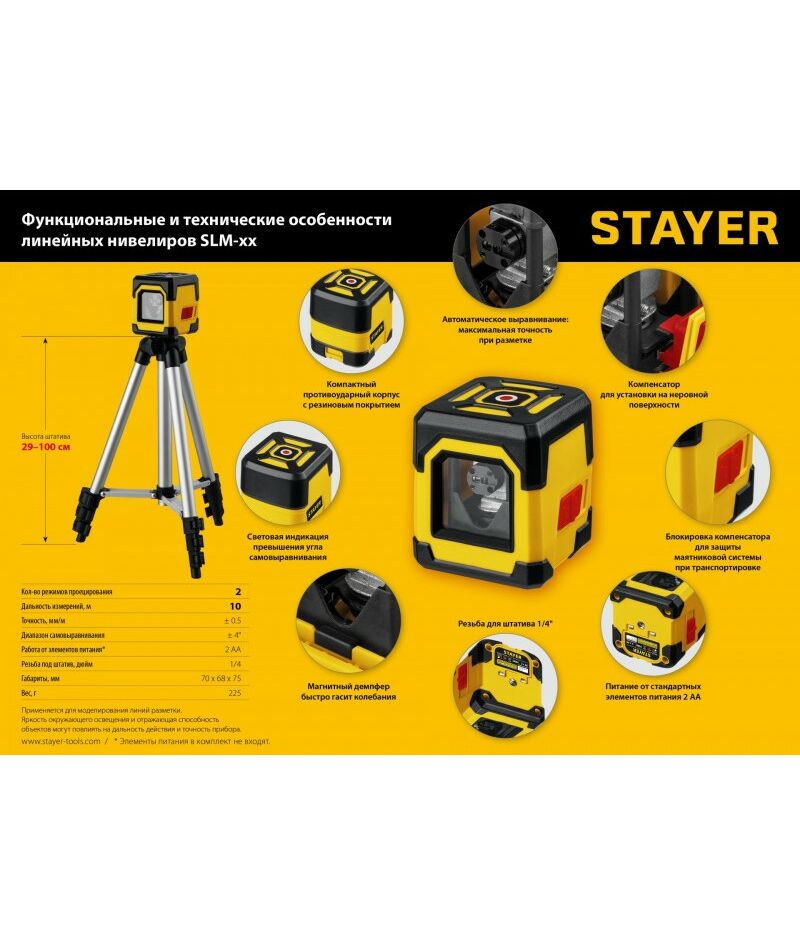 Нивелир лазерный STAYER SLM 10м, точн. +/-0,5 мм/м [34961]