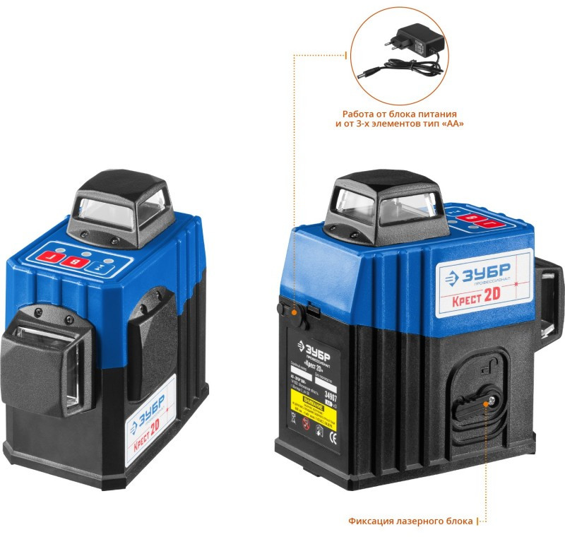 Нивелир лазерный Зубр КРЕСТ 2D 2х360°, 20м/70м, точн. +/-0.3 мм/м [34907]