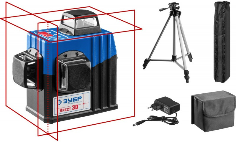 Нивелир лазерный Зубр КРЕСТ 3D №2 3х360°, 20м/70м, точн. +/-0.3 мм/м, штатив [34908-2]