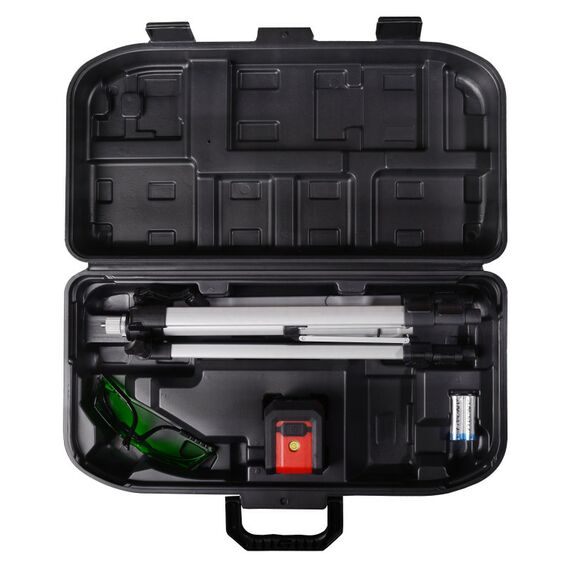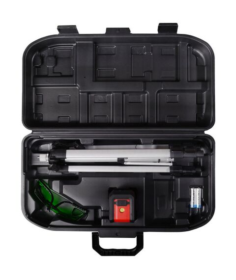 Построитель лазерный – измерительный прибор, который позволяет выполнять измерительные задачи в строительстве: построение горизонтальной и вертикальной плоскостей для выверки и контроля правильности взаимного расположения плоскостей, установки угла в 90 градусов между плоскостями. Прибор позволяет измерять угол между вертикальными плоскостями относительно точки его размещения и контролировать неровность поверхности относительно горизонта и перпендикулярной плоскости.